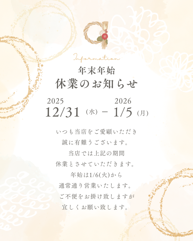 年末は混み合いますので、お早めのご予約をおすすめしております。どうぞよろしくお願いいたします。